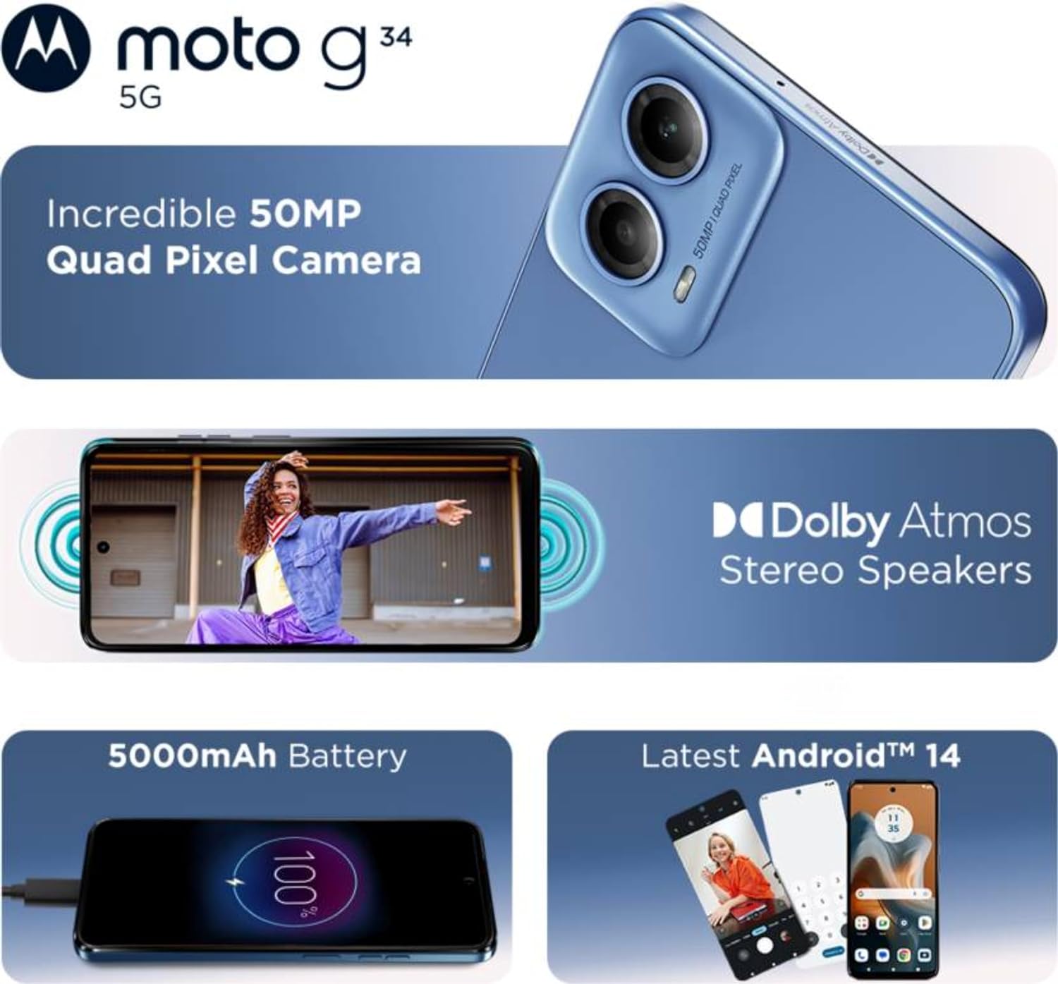 Rear camera(Primary) 50 MP resolution wide Angle lensf/1.8 aperture1.28µm pixel size